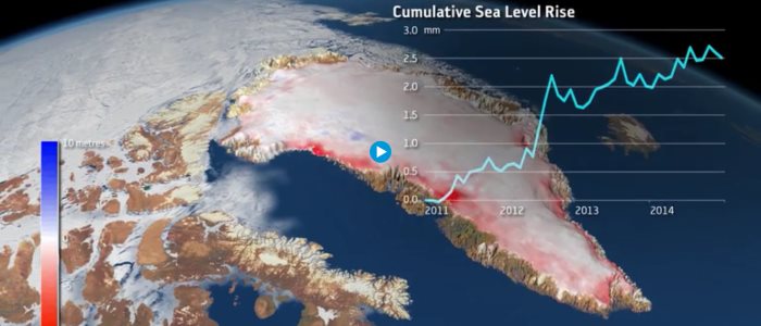 Between 2011 and 2014, Greenland lost around one trillion tonnes of ice. This corresponds to a 0.75 mm contribution to global sea-level rise each year – about twice the average of the preceding two decades.